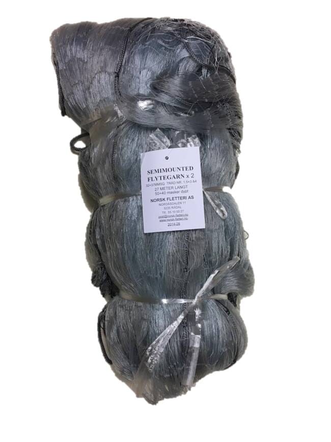 Monter kombigarnet selv – spar penger! Garnbuss som er 27 meter lang og består av to ulike maskestørrelser. Garnbussen er ferdigmontert med følgeline rundt. Det er bare å feste kork og blyline. Bruk gjerne kork og bly fra gamle utslitte garn.