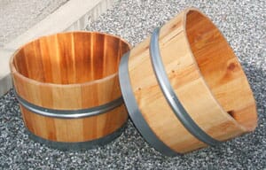 Blomsterstamp laget av tørr og god furustav. Leveres med galvanisert jernbånd.