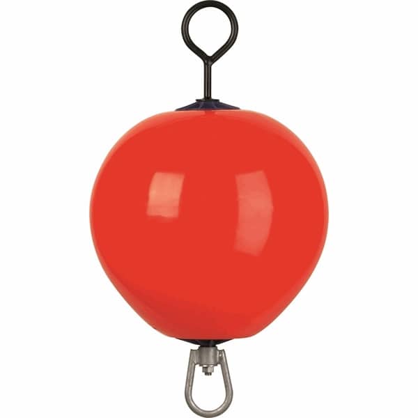 Fortøyningsbøye med gjennomgående kort stang. Rotasjonstøp i beste kvalitet myk PVC.