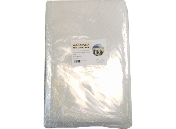 Vakuumpose som passer de fleste vakuumpakkere på markedet. Egnet for vakuumering av pålegg, ost, mindre stykker av kjøtt, fugl og fisk etc.