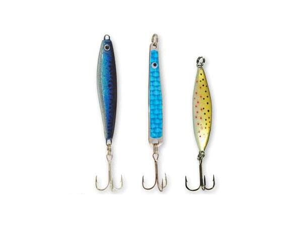 Spennende sjøørretsluker i sett. Her får du både Jensen Mini-Pirken (10g), Jensen Tobis (12g) og Rogerdraget (13g). Blå sluker er en klassiker til sjøørretfiske, men troutfargen (til høyre på bildet) er også definitivt verdt å prøve i jakten på sjøørret.